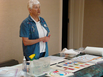 Joan Ammerman reported that double-sided glass frames, suitable for framing last month's demonstration workshop's batik snowflakes could be purchased at Hobby Lobby.
